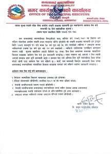 नगरमा स्थायी बसोबास गर्ने र आगामी फागुन १२ गतेसम्म १८ वर्ष उमेर पुरा भई ३५ वर्ष ननाघेका पुरुष तथा महिला र अपाङ्गको हकमा १८ वर्ष पुरा भई ४० वर्ष ननाघेका व्यक्तिहरुले १५ दिन अर्थात आगामी फागुन १२ गते भित्र निवेदन दिनुपर्ने छ ।
