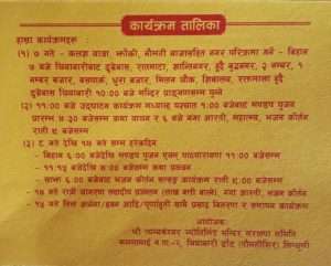 सोही मन्दिरलाई पुनर्निर्माण, त्रयम्बकेश्वर ज्योतिर्लिङ्ग उत्पतीको कथा, गौतम ऋषी र गौतम ऋषीपत्नीअहिल्या गौतमी गंगाको महत्व र महिमाका बारेमा प्रचार प्रसार गर्न उक्त पवित्र स्थालमा श्रीमदभागवत सप्ताह ज्ञान महायज्ञ आयोजना गरिएको त्रयम्बकेश्वर ज्योतिर्लिङ्ग मन्दिर व्यवस्थापन समितिका अध्यक्ष दानबहादुर जर्गामगरले बताए ।