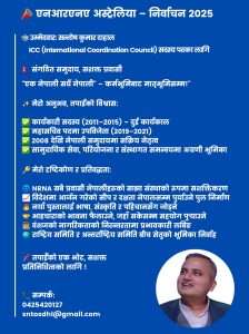 गैर आवासीय नेपाली संघ (एनआरएनए) को आगामी अन्तर्राष्ट्रिय समन्वय परिषद् (आइसिसी) सदस्यमा सन्तोष दाहालले उमेदवारी घोषणा गर्नु भएको छ ।